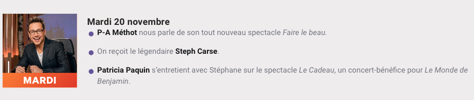 TV Appearance on “Le Show de Rousseau” on November 20 2018.